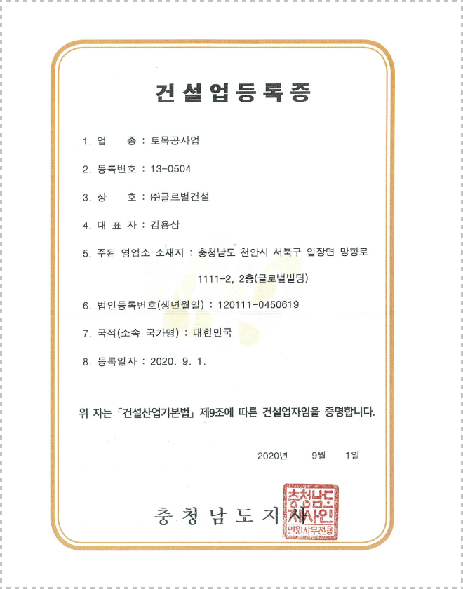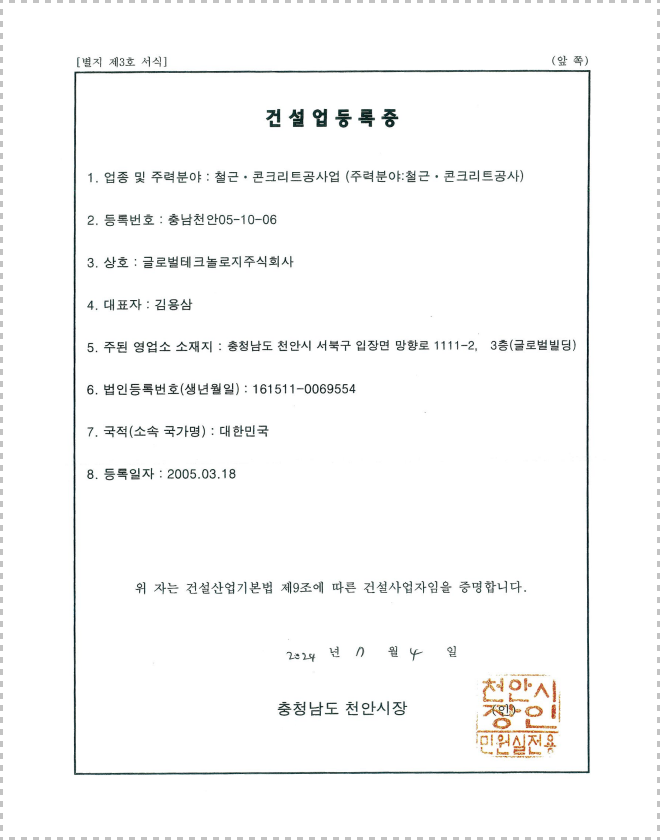 철근콘크리트전문건설면허 (충남천안05-10-06)